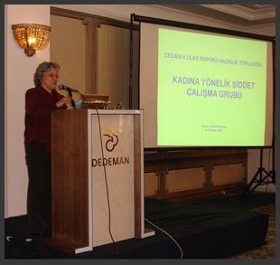 1986 yılından bu yana Türkiye’nin de taraf olduğu Birleşmiş Milletler Kadına Karşı Her Türlü Ayrımcılığın Önlenmesi Sözleşmesinin (CEDAW) 18. maddesi uyarınca ülkelerin her dört yılda bir ülke raporunu sunma yükümlülüğü vardır. Bu yükümlülük gereğince KSGM’nin düzenlediği CEDAW ülke raporu hazırlık toplantısına katıldık. Yapılan davet, ağırlıklı olarak hukuki olarak ayrımcılığın giderilmesi yönünde atılan pek çok adımın dördüncü ve beşinci ülke raporlarına yansıtıldığını, hazırlanacak olan altıncı raporun ise üniversiteler ve STK temsilcilerinin katkılarıyla birlikte uygulamadaki gelişmelere yer verilerek hazırlanmasının önemine vurgu yapıyordu.